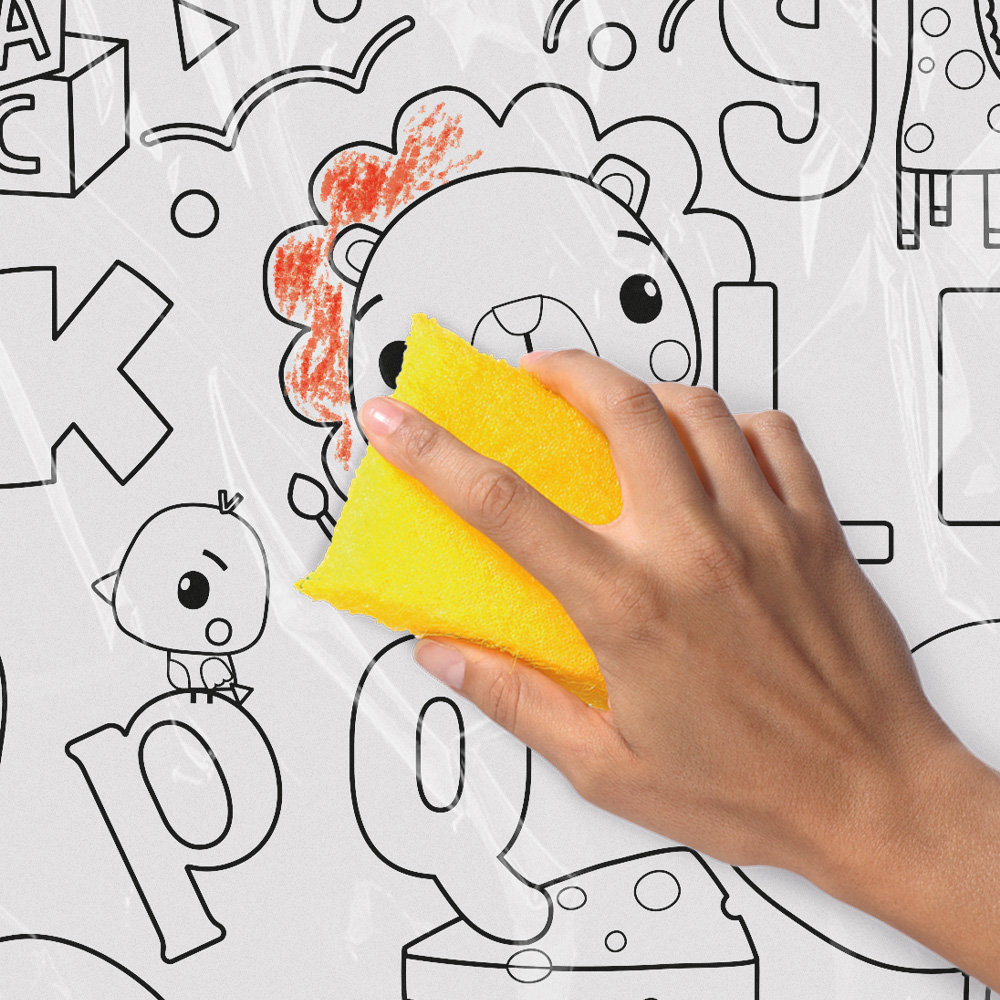 Edad: +3 años. Tamaño: 68x65x0,2cm. Alfombra acolchada.Los niños pueden pintar y borrar con facilidad gracias a su material especial. Incluye estuche con 12 ceras de colores.