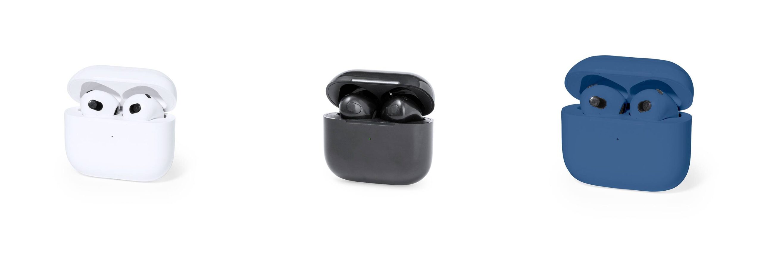 – Auriculares inalámbricos Bluetooth Twins con tecla táctil y estuche de carga.