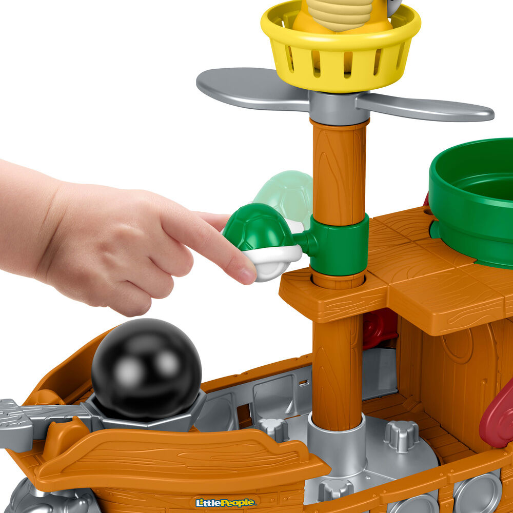 Contiene 1 barco, 1figura y 1 pieza de juego. Los más pequeños se sumergirán en el emocionante mundo de Super Mario con este conjunto de juego de barco de Bowser de My Mario Little People de Fisher-Price. Este barco de juguete para empujar está inspirado en el emblemático videojuego e incluye divertidas actividades diseñadas para niños en edad preescolar, como un cañón, piezas giratorias y una tubería con una trampilla para dejar caer cosas. Cuando los niños hacen rodar el vehículo, ¡el barco de Bowser sube y baja como una ola! ¡Busca más juguetes My Mario de Little People para que los peques se diviertan! (Los demás juguetes se venden por separado y están sujetos a disponibilidad). Los colores y la decoración pueden variar. Ninguna advertencia aplicable.