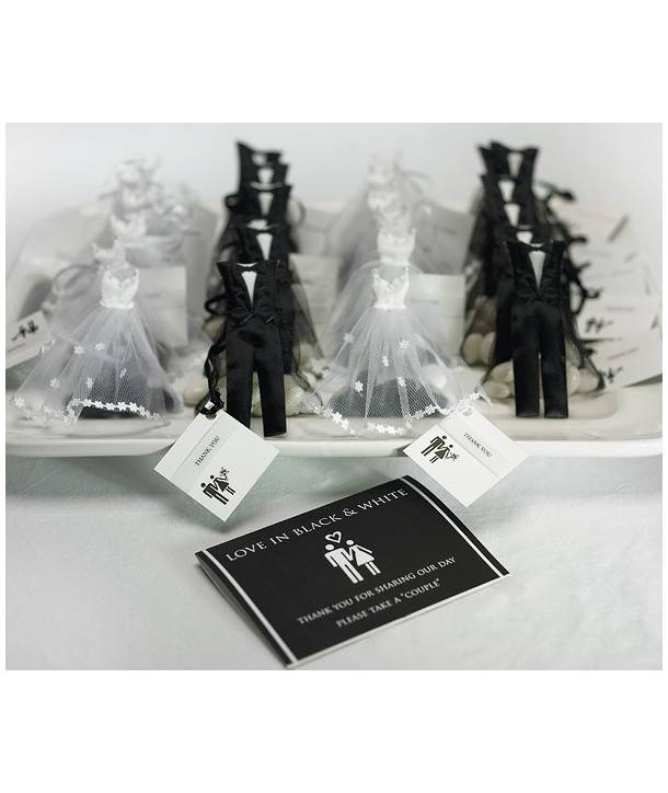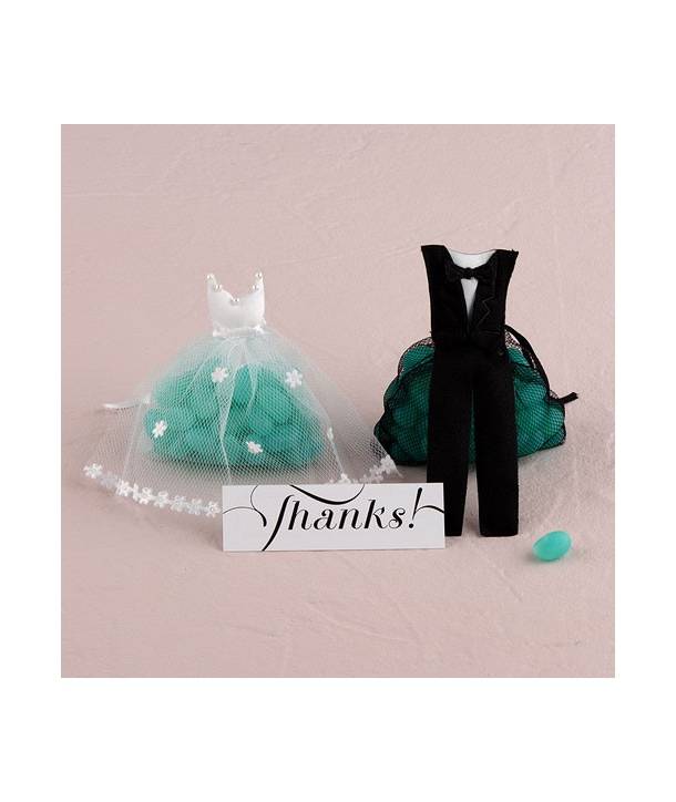 Preciosas bolsas para dulces con forma de vestido de novia y traje de novio. Este producto se vende vacío. Este producto se vende sin personalizar. Medidas:7.6cm x 10.8cm