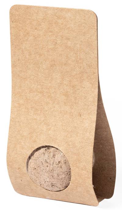 Semillas presentado en display de cartón reciclado. Por la parte trasera aparecen las instrucciones de plantado y el distintivo Made in Europe.
