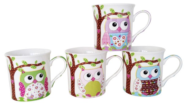 Set 12 Tazas búhos presentada en original bolsa de regalo.