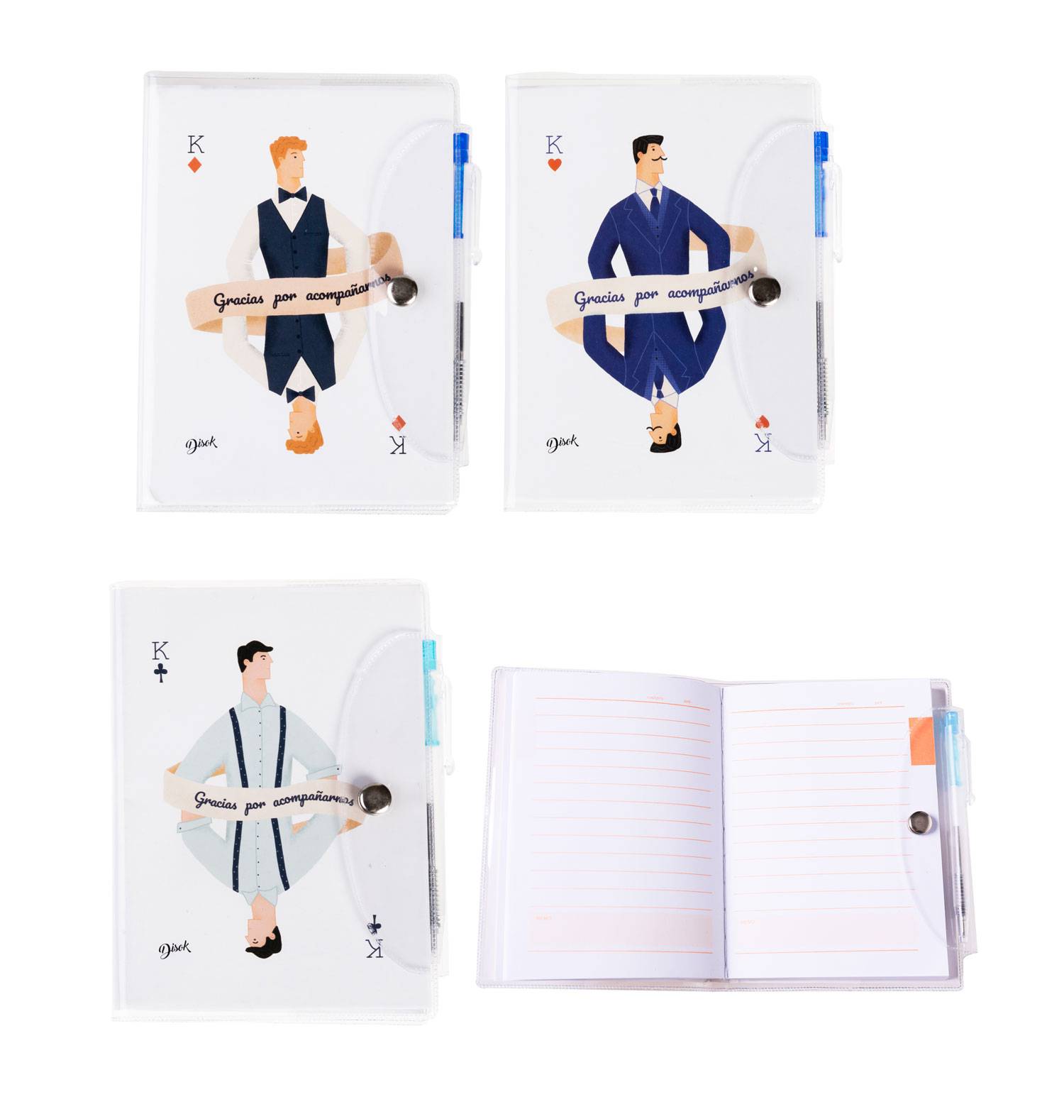 Libreta de pvc con tres diseños de caballero inspirado en una baraja de cartas.