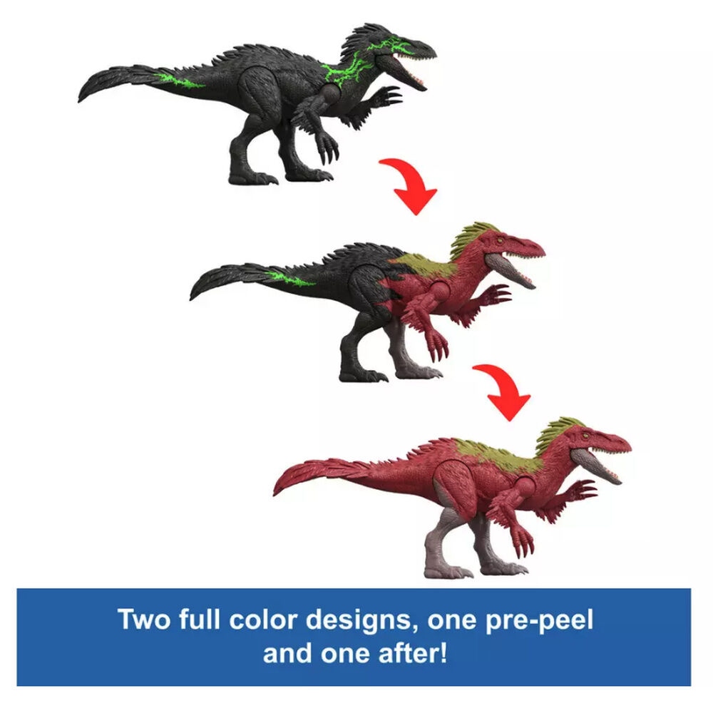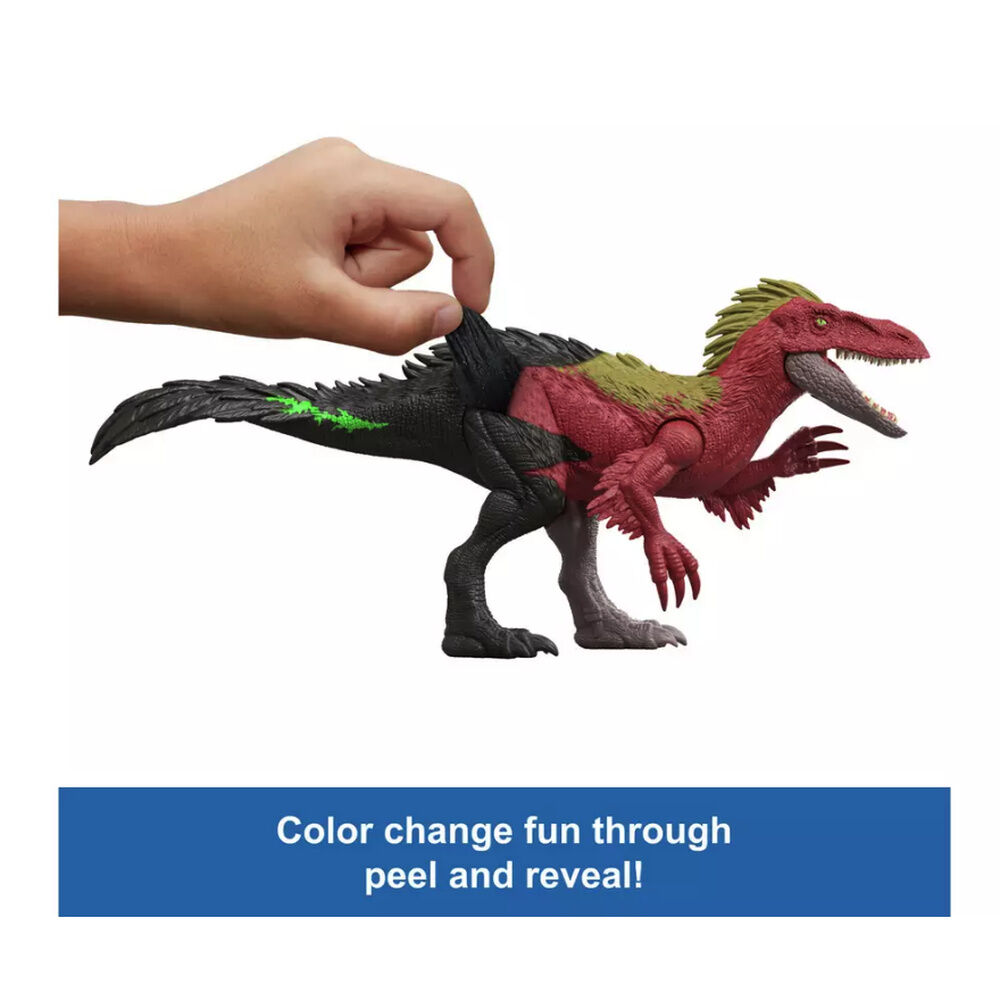 Tamaño: 28cm. Articulaciones móviles y detalles realistas, está listo para batallas y aventuras prehistóricas. Los dinosaurios Jurassic World Dino Reveal traen una nueva forma de jugar. Libera su diseño oculto, cambia los colores y descubre la diversión prehistórica con su función Libera y Descubre. Desgarra el empaque del dinosaurio para descubrir su diseño a todo color. Quita la capa química del dinosaurio para descubrir colores ocultos. ADVERTENCIA: Contiene o puede generar partes pequeñas que pueden causar asfixia.