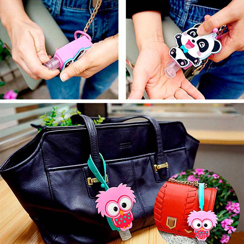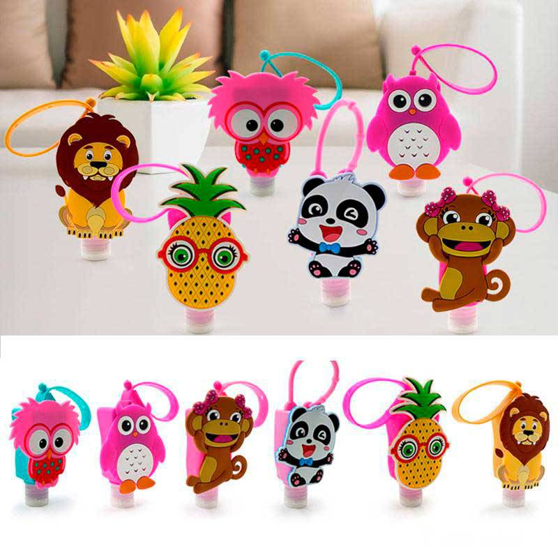 Este original y divertido llavero con bote animales para gel hidroalcohólico es un práctico llavero.