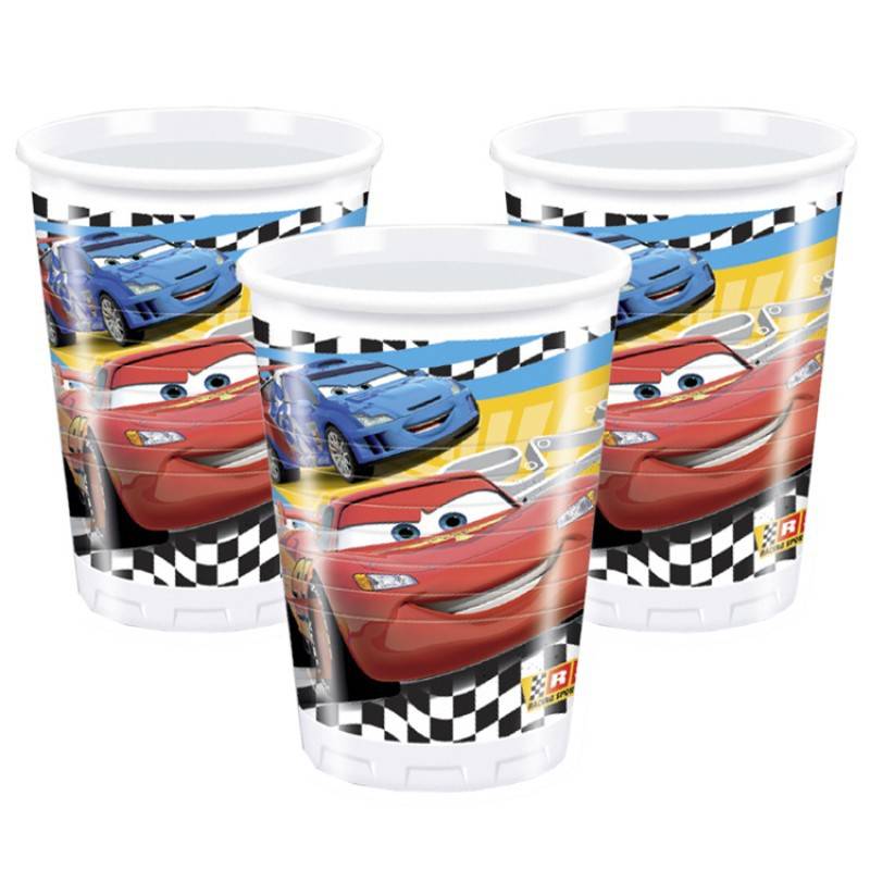 Pack de 8 vasos de papel con diseño de Disney Cars. Capacidad: 200 ml.