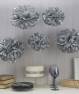 4-. Pompones (5 uds) Pack de 5 pompones blancos de papel de seda compuesto por 3 pompones grandes ( 32.5 cm) y 2 pompones más pequeños ( 25.5 cm).