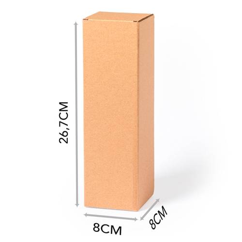 Caja de presentación especialmente diseñada para bidones. Fabricada en cartón reciclado corrugado de acabado kraft.
