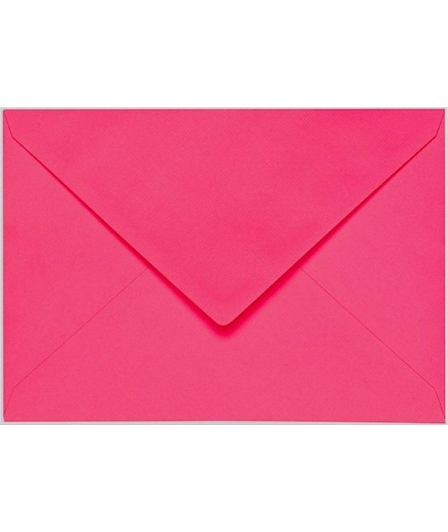 Sobres de color fucsia diseñados en  papel verjurado, con interior forrado en papel de seda de color blanco.