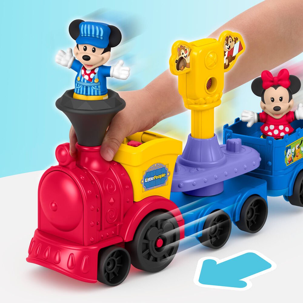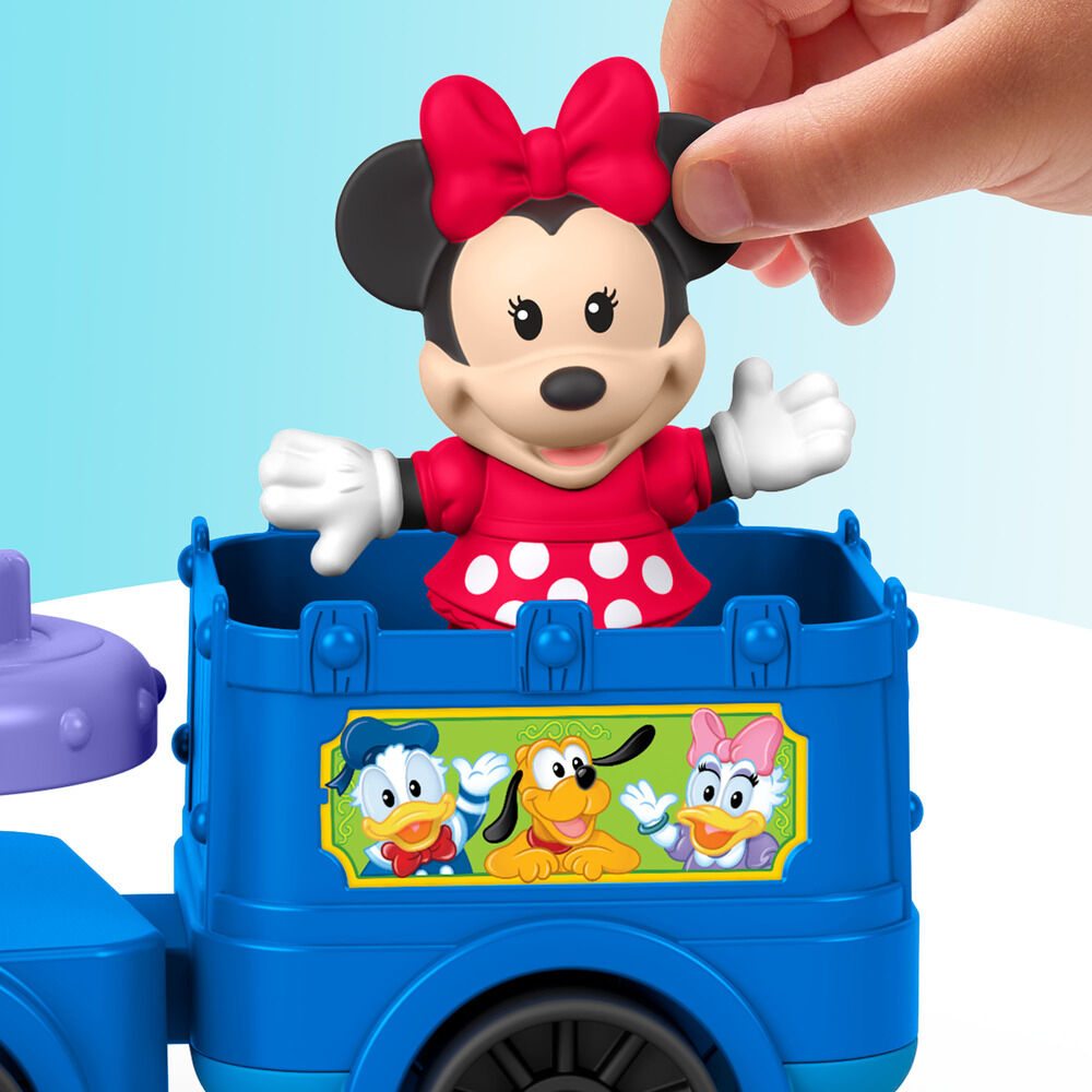 Contiene 1 tren, 2 figuras. Los peques podrán imaginar un sinfín de aventuras con sus amigos favoritos de DISNEY Jr, Mickey y Minnie Mouse, con este tren de juguete musical de la gama Little People de Fisher-Price. Este tren de juguete para empujar cuenta con música y sonidos divertidos, un vagón de pasajeros con asientos giratorios, un semáforo desplegable y 2figuras de Little People de Mickey y Minnie, los personajes de DISNEY Jr. ¡A los niños y las niñas les encantará hacer que Mickey y Minnie emprendan todo tipo de viajes musicales! ¡Busca más figuras de Little People con personajes de DISNEY Jr para llevarlas en el Tren musical de Mickey y Minnie y disfrutar aún más jugando! (Los demás juguetes se venden por separado y están sujetos a disponibilidad). Funciona con 2pilas AA (incluidas). Los colores y la decoración pueden variar. Ninguna advertencia aplicable.